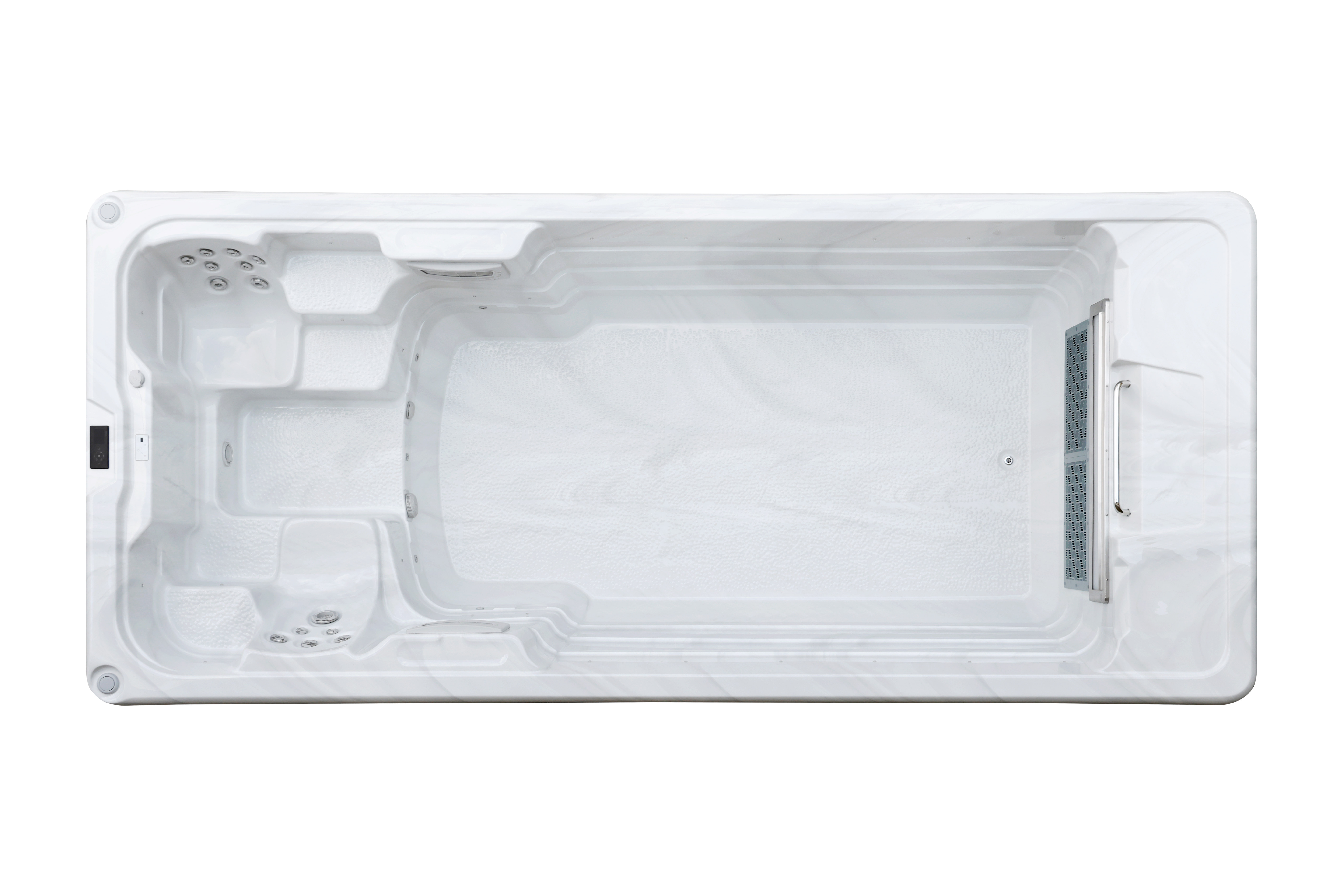 Helsinki Turbo оснащен высокопроизводительным пропеллерным насосом мощностью 6,5 кВт с 16 скоростными режимами, генерирующий сильный и ровный поток, позволяющий комфортно плавать на одном месте. Дополнительный насос 1,5 кВт поддерживает работу 18 массажных форсунок, обеспечивая эффективное восстановление после физических нагрузок.